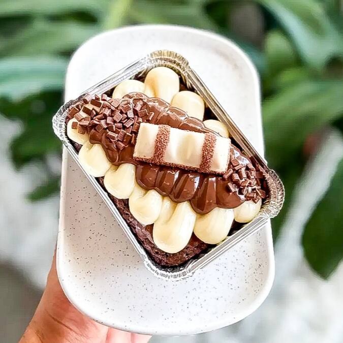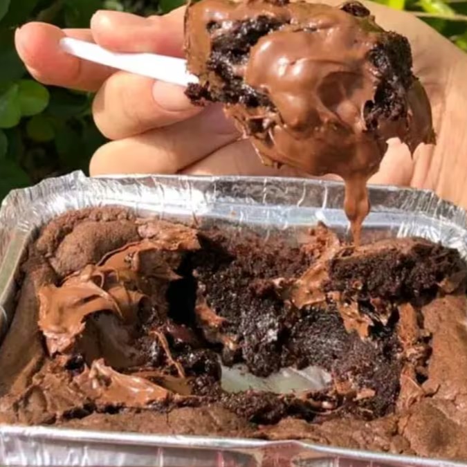 Delicioso brownie bem chocolatudo e molhadinho, recheado com brigadeiro de Ninho bem cremoso. Finalizado com Nutella Original pura.