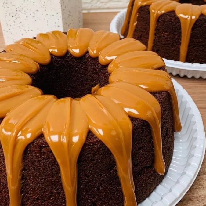Bolo caseiro com massa de chocolate extremamente fofinha e saborosa, que derrete na boca, feita com chocolate de 50% de cacau. Cobertura de doce de leite artesanal, feito na minha cozinha. Combinando perfeitamente com nossa massa.