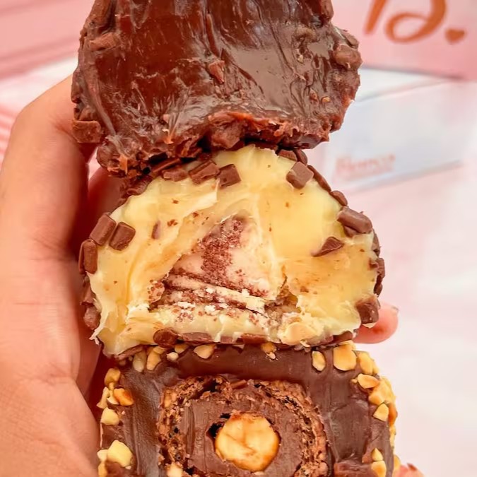 Massa de chocolate fofinha, que derrete na boca. A cobertura de brigadeiro, cuidadosamente preparada com chocolate 50%, oferece um sabor incrível. Finalizado com amendoim triturado, Nutella.