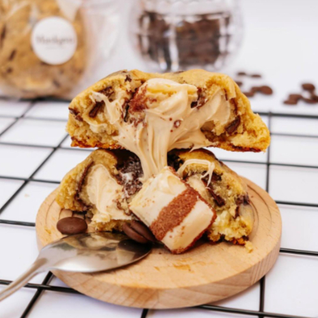 Delicioso cookie artesanal, massa super gostosa e amanteigada que derrete na boca, gotas de chocolate trazendo mais textura e sabor, recheio creme de Kinder bueno. Finalizado com um pedaço do bombom Kinder e Nutella.