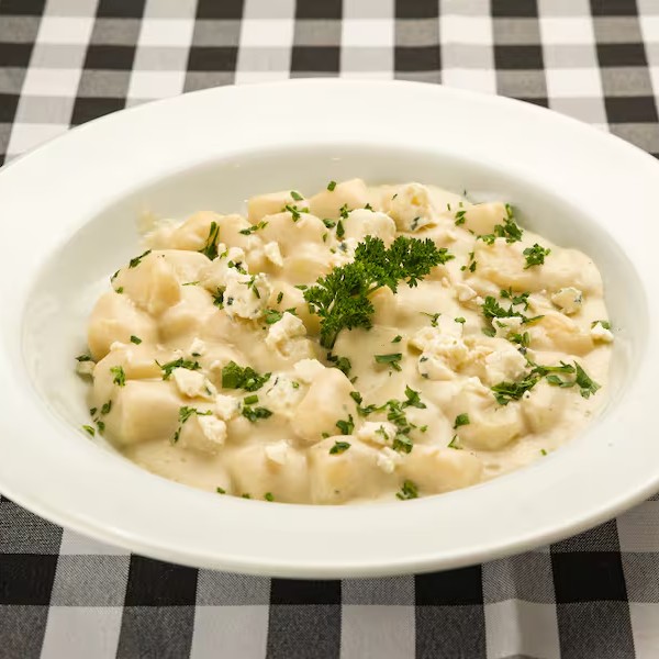 Nhoque de batatas com molho de queijo parmesão e gorgonzola