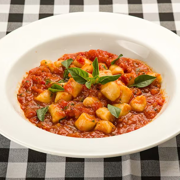 Nhoque de batatas com nosso molho de tomates caseiro e manjericão