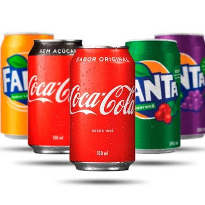 Coca, Coca(zero), Fanta laranja, Guarana, Pepsi, Pepsi(Zero) e Sprite