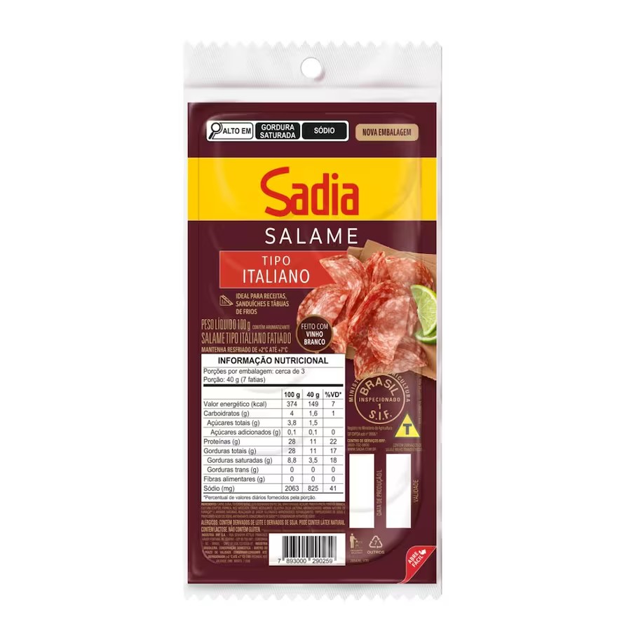 Salame Tipo Italiano Sadia100g (embalagem 100g)
