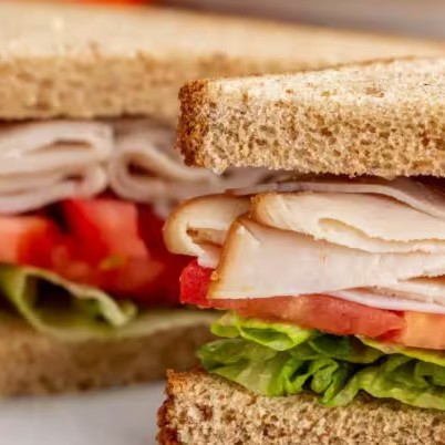 Delicioso Lanche Natural acompanhado de:- 3 fatias Pão integral- Peito de peru defumado- Mussarela- Salada- Cenoura ralada