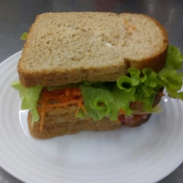 Delicioso Lanche Natural acompanhado de:- 3 fatias Pão integral- Presunto- Mussarela- Salada- Cenoura ralada