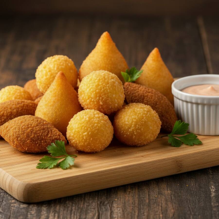 Quer Impressionar? Sirva nossos mini salgados crocantes e Irresistíveis. Fritos na hora, cheios de sabor e prontos para devorar. Perfeitos para reuniões, pausas ou encontros com amigos!