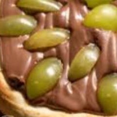 Recheio cremoso de chocolate ao leite, finalizado com pedaços frescos de uvas.