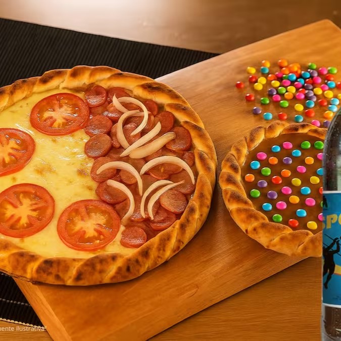 Promoção Pizza Grande + Broto Doce + Refrigerante Grátis