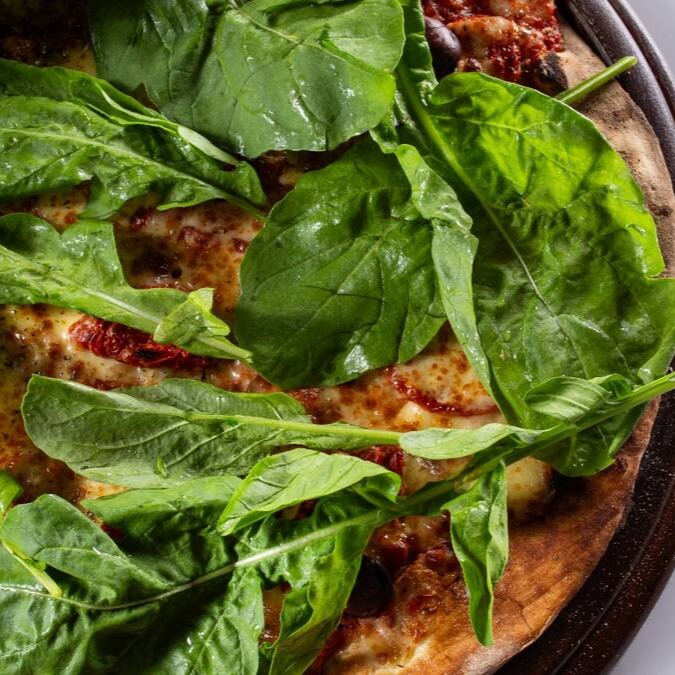 Pizza de massa artesanal, molho de tomate caseiro, tomate seco, queijo mussarela, rúcula (separada), azeitonas pretas e orégano. A clássica que todos adoram <3