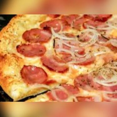 Massa artesanal, molho de tomate natural, calabresa fatiada, cebola, muçarela, orégano e azeitonas.
