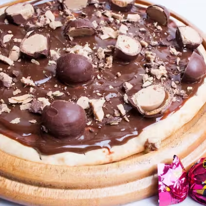 Pizza Broto (4 Fatias) doce de Sonho de Valsa (Massa tradicional, chocolate ao leite, pedaços de bombom sonho de valsa)