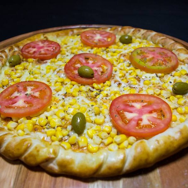 Molho de tomate, mussarela, milho, tomate, orégano e azeitonas*** temos também de 4 e 12 pedaços, desça o cardápio e confira***