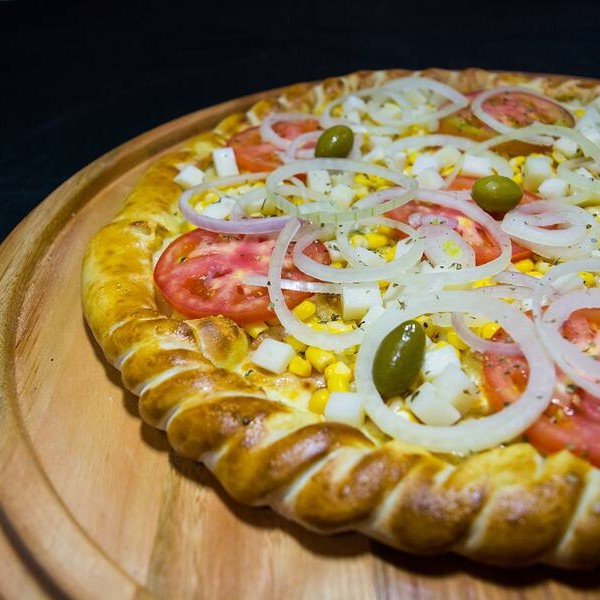 Molho de tomate, mussarela, milho, palmito, cebola, tomate, orégano e azeitonas*** temos também de 4 e 12 pedaços, desça o cardápio e confira***