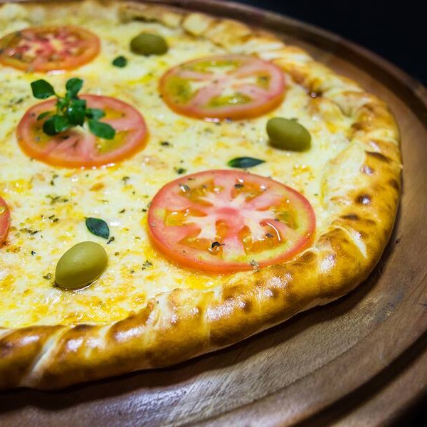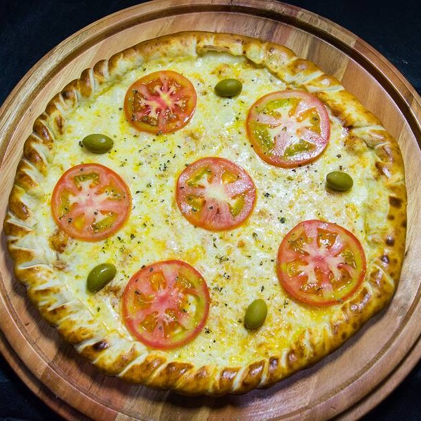 Molho de tomate, mussarela, tomate, orégano e azeitonas*** temos também de 4 e 12 pedaços, desça o cardápio e confira**