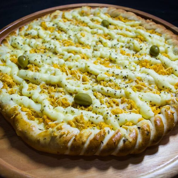 Molho de tomate, mussarela, frango desfiado, requeijão cremoso, orégano e azeitonas*** Temos Também De 4 E 12 Pedaços, Desça O Cardápio E Confira***