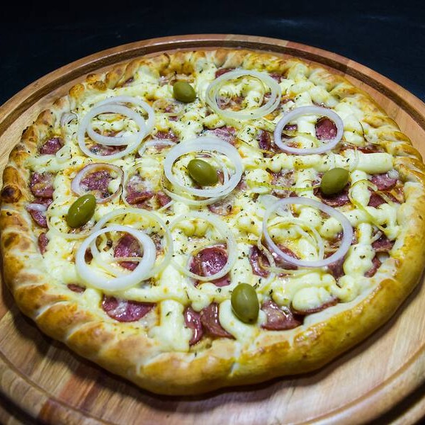 Molho de tomate, mussarela, calabresa, cebola, requeijão cremoso, orégano e azeitonas*** Temos Também De 4 E 12 Pedaços, Desça O Cardápio E Confira***