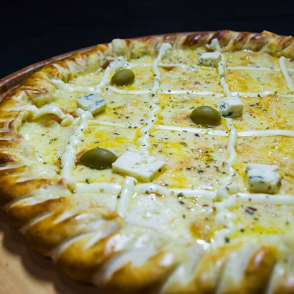 Molho de tomate, mussarela, queijo parmesão, gorgonzola, requeijão cremoso, orégano e azeitonas*** temos também de 4 e 12 pedaços, desça o cardápio e confira***