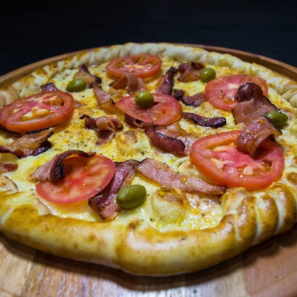 Molho de tomate, mussarela, bacon, tomate, orégano e azeitonas*** Temos Também De 4 E 12 Pedaços, Desça O Cardápio E Confira***