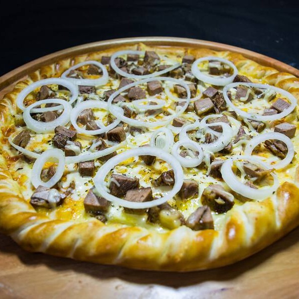 Molho de tomate, mussarela, costela bovina em pedaços, cebola, orégano e azeitonas *** Temos Também De 4 E 12 Pedaços, Desça O Cardápio E Confira***