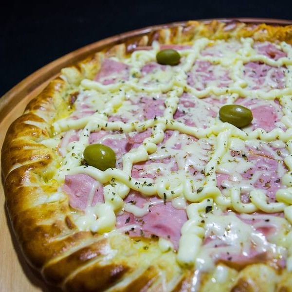 Molho de tomate, mussarela, presunto, requeijão cremoso, orégano e azeitonas*** temos também de 4 e 12 pedaços, desça o cardápio e confira***