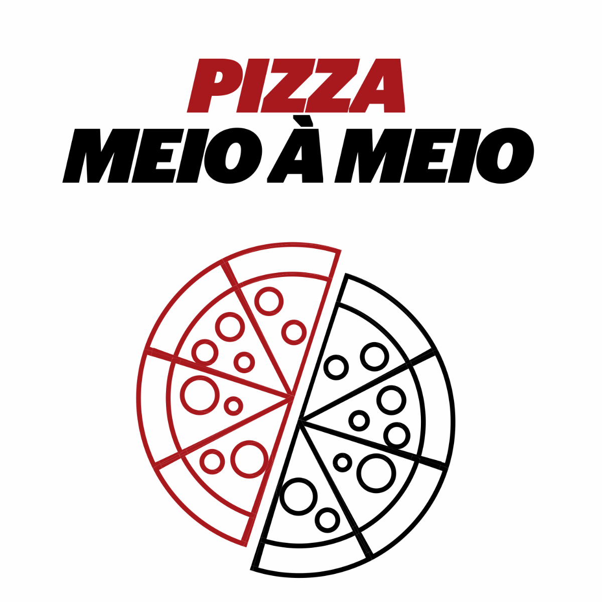1/2 Pizza de Calabresa: Calabresa, cebola, mussarela, molho de tomate, orégano e azeitonas 1/2 Pizza de Mussarela: Mussarela, tomate, molho de tomate, orégano e azeitonas