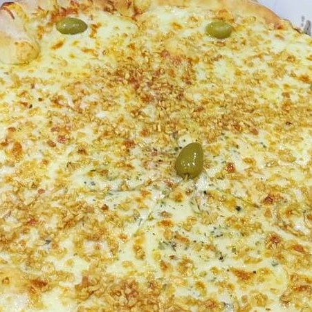 Molho De Tomate, Mussarela, Requeijão Cremoso, Orégano E Azeitonas Verdes.