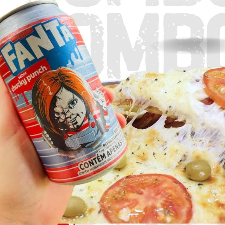 EDIÇÃO LIMITADA) ACOMPANHA UMA PIZZA BROTO (4 FATIAS) PREPARADA COM MOLHO DE TOMATE, MUSSARELA,TOMATE,ORÉGANO E AZEITONAS + UMA LATA 350ML FANTA CHUCKY PUNCH! APROVEITE, EDIÇÃO LIMITADA!!!