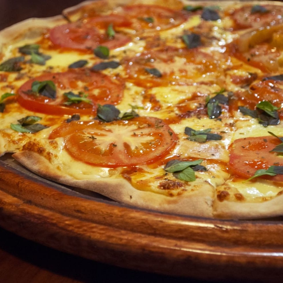 Nosso delicioso molho de tomate caseiro, a deliciosa mussarela, lombo em rodelas, nosso delicioso requeijão, champignon, queijo parmesão, rodelas de tomate, manjericão, azeitonas e uma pitada de orégano.