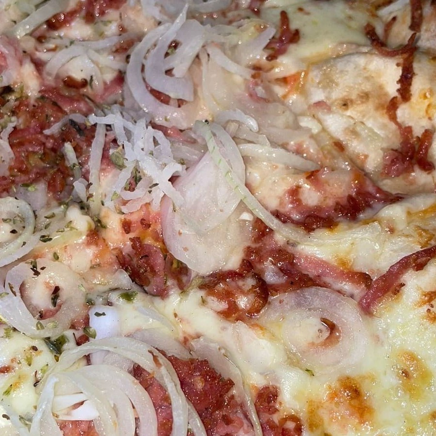 Molho de tomate, mussarela, linguiça calabresa moída, cebola e orégano.