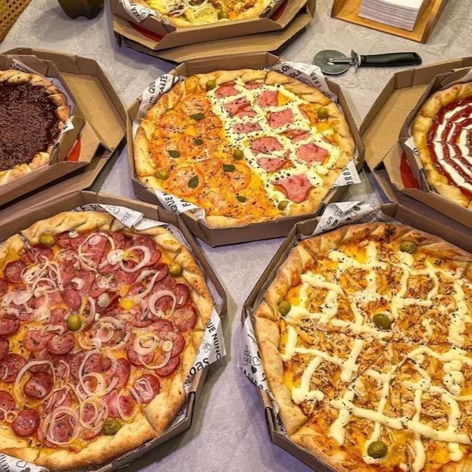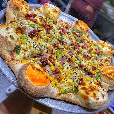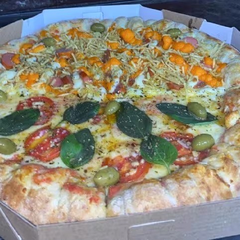 Pizza Nordestina De Vulcao Muita Mussarela Presunto Bacon Calabresa Picadinha Milho E Pimentao Verde E Borda Vulcao De Cheder E Catupiry 8 Pedaços