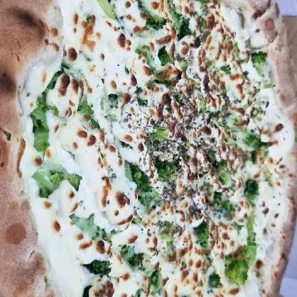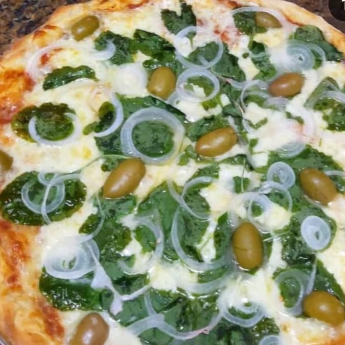 Pizza De Brócolis Molho De Tomate Coberta De Catupiry E Muita Mussarela Azeitona E Orégano Recheadissima. 8 pedaços
