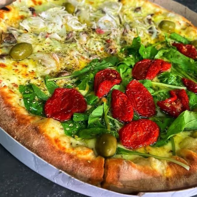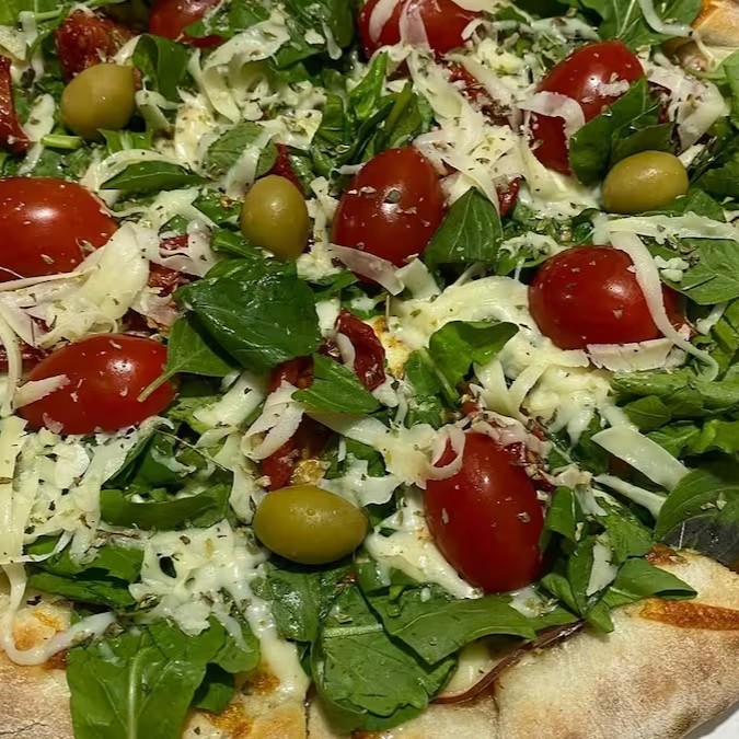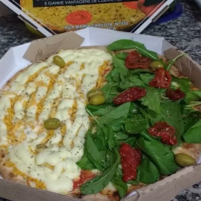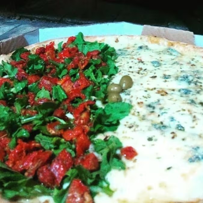 Pizza Rucula Picada Com Tomate Seco E Meia 4 Queijos 8 Pedaços