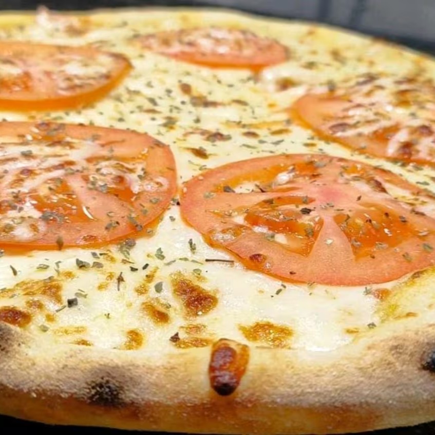 Pizza de marguerita manjericão parmesão molho de tomate muita mussarela bem recheada e bem quentinha. 8 pedaços