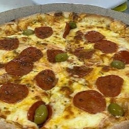 Pizza de peperoni molho de tomate muita mussarela e peperoni azeitonas e orégano