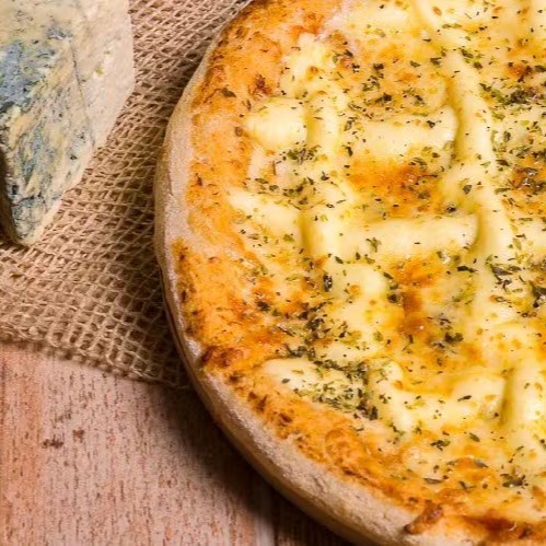 Pizza 4 queijos molho de tomate muita mussarela muito provolone e gongorzola e muito requeijão