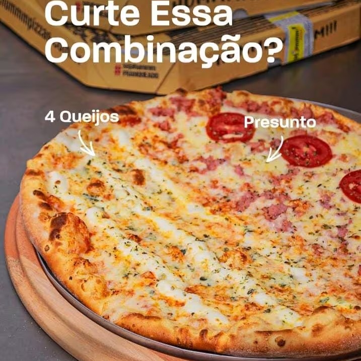 Pizza Meia 4 Queijos E Meia Presunto Queijo E Tomate +borda Requeijao Grátis 8 Pedaços