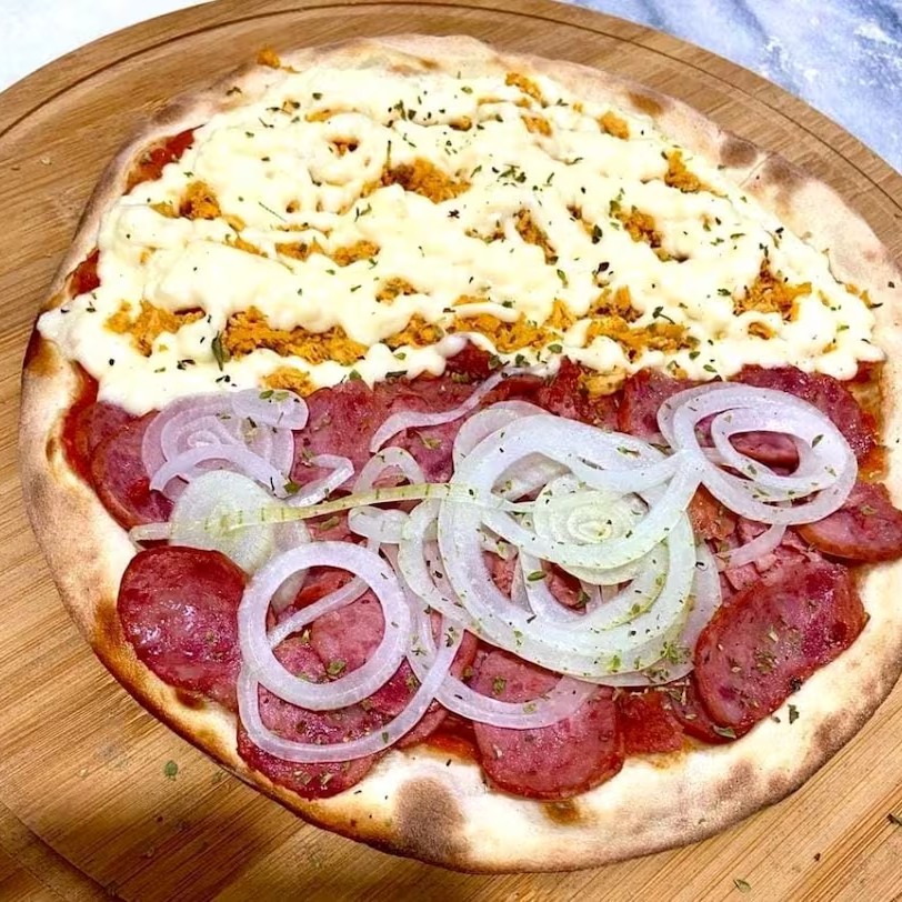 Pizza 8 Pedaços Calabresa E Metade Frango Com Catupiry Caprichada Bem Recheada Muita Mussarela Muito Recheio