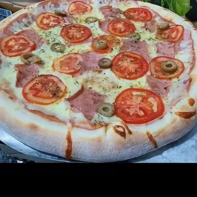 Pizza de presunto 8pedaços picado com queijo e azeitonas caprichada