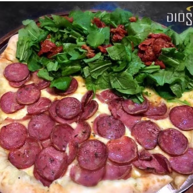 Pizza Meia Calabresa Por Cima Sem Cebola E Meia Rucula Picada Com Tomate Seco