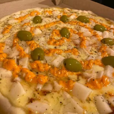 Pizza De Peito De Peru Com Catupiry E Queijo Por Cima Ou Por Baixo Azeitonas E Orégano 8.pedacos Recheadissima