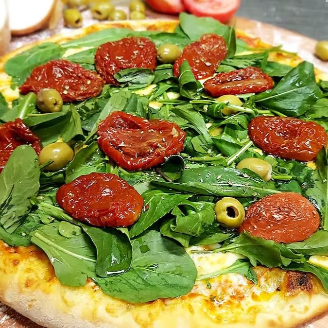Pizza De Rucula Com.tomate Seco Por Cima 8 Pedaços