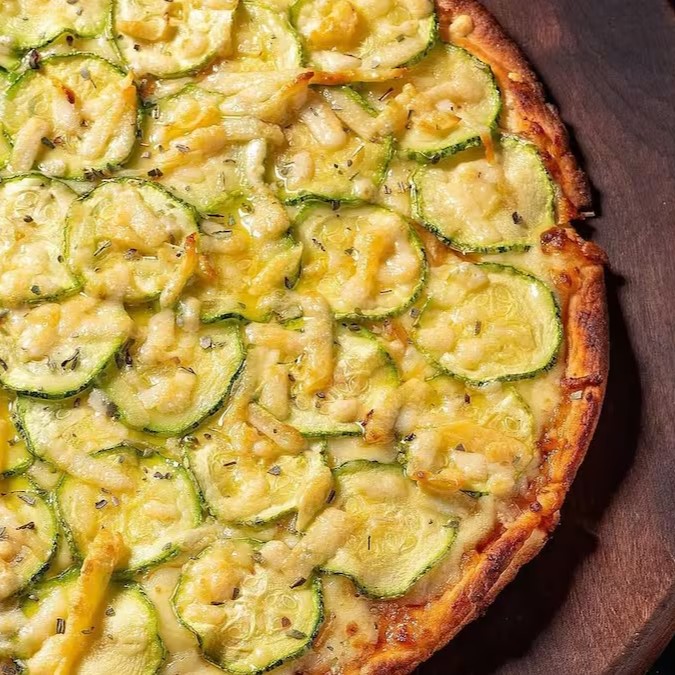 Pizza De Abobrinha Com Parmesão 8 Pedaços E Queijo Por Baixo