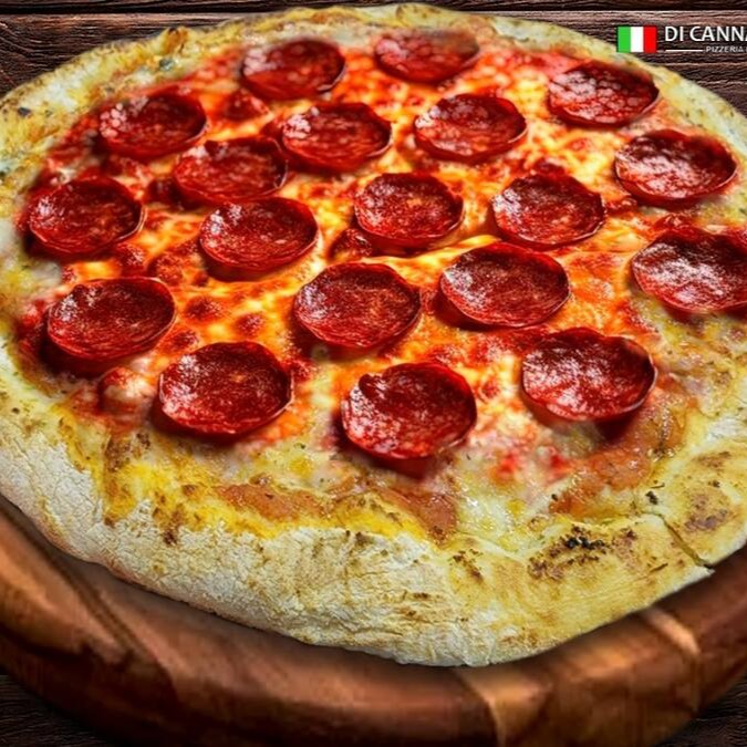 Massa artesanal, molho de tomate italiano, mussarela e fatias de pepperoni italiano.