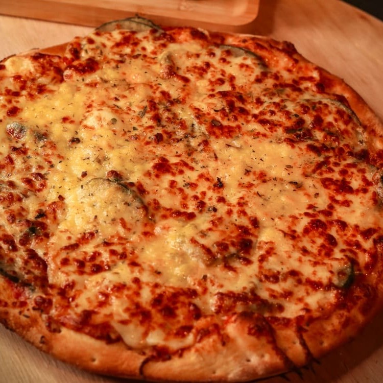 Molho, mussarela, abobrinha, parmesão, azeitonas e orégano