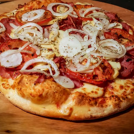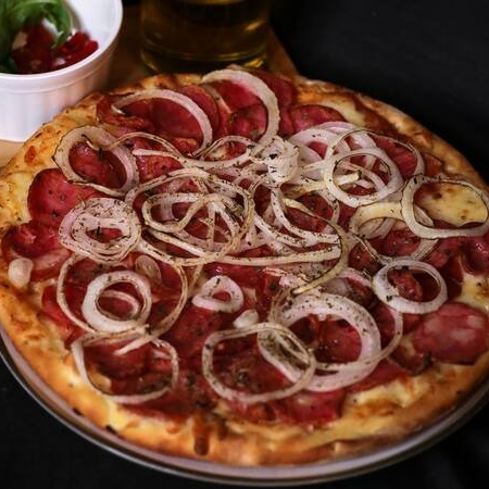 Pizza Calabresa Especial - 8 Pedaços Experimente nossa deliciosa Pizza Calabresa Especial, feita com molho de tomate fresco, mussarela derretida, calabresa, cebola, azeitonas e orégano. Ingredientes frescos e receita tradicional para um sabor autêntico.