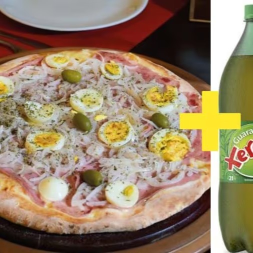 Mussarela, Presunto, Palmito, Ervilha, Ovos, Cebola + Refri Kuat
