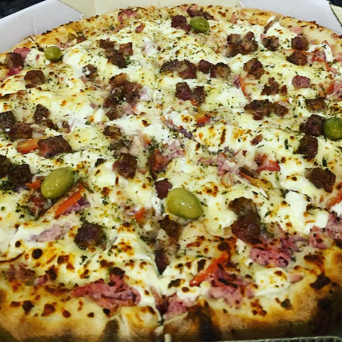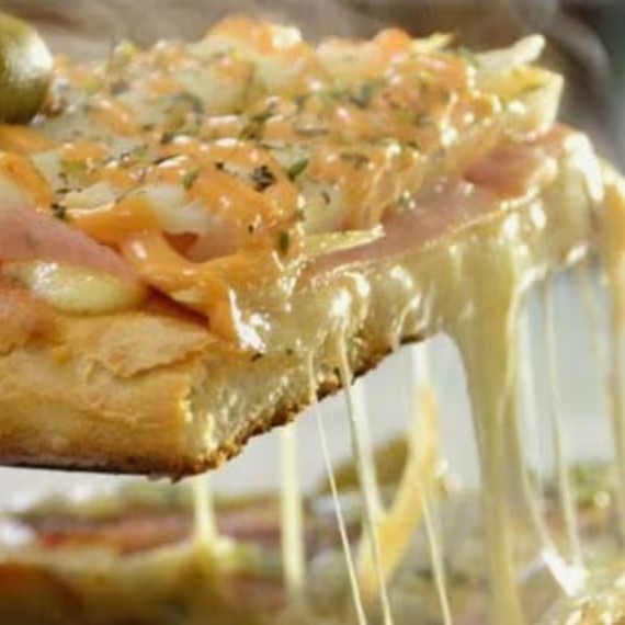 Pizza Família de 12 Pedaços recheados de Lombinho e Catupiry + 1 Refrigerante Kuat de 2 litros.