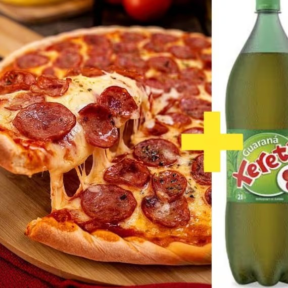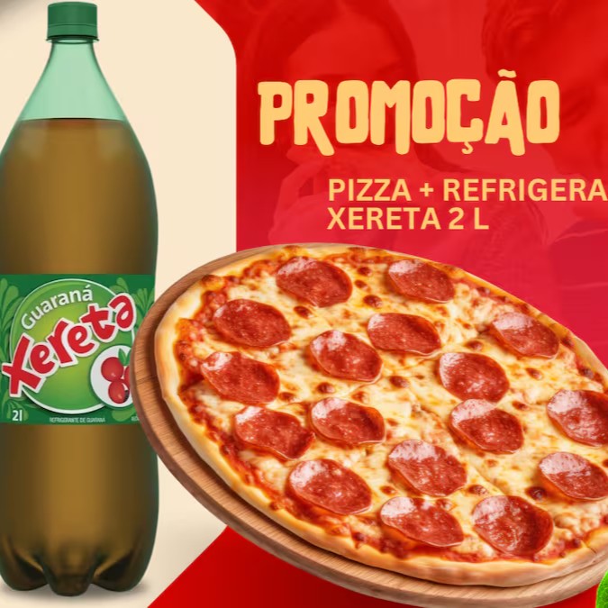 "Peça 1 Pizza G meio a meio e ganhe 1 Xereta 2l grátis! Aproveite e garanta muito sabor com brinde especial."