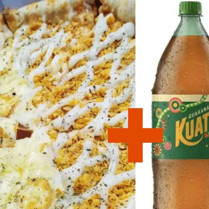 Pizza F 2 Sabores Frango Catupiry + Provolone + 1 Kuat 2l